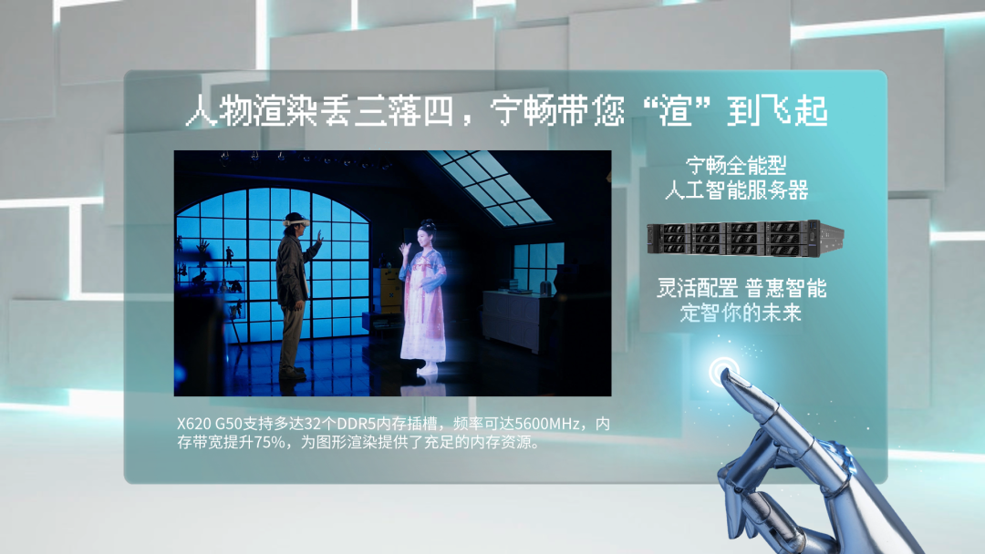 在图形渲染领域,X620 G50同样表现出色。其支持多达32个DDR5内存插槽,频率可达5600MHz,内存带宽提升75%,为图形渲染提供了充足的内存资源。同时,X620 G50支持12个3.5寸或24个2.5寸硬盘,兼容NVMe SSD,实现存储资源的个性化选择,满足图形渲染过程中对大量存储空间的需求。